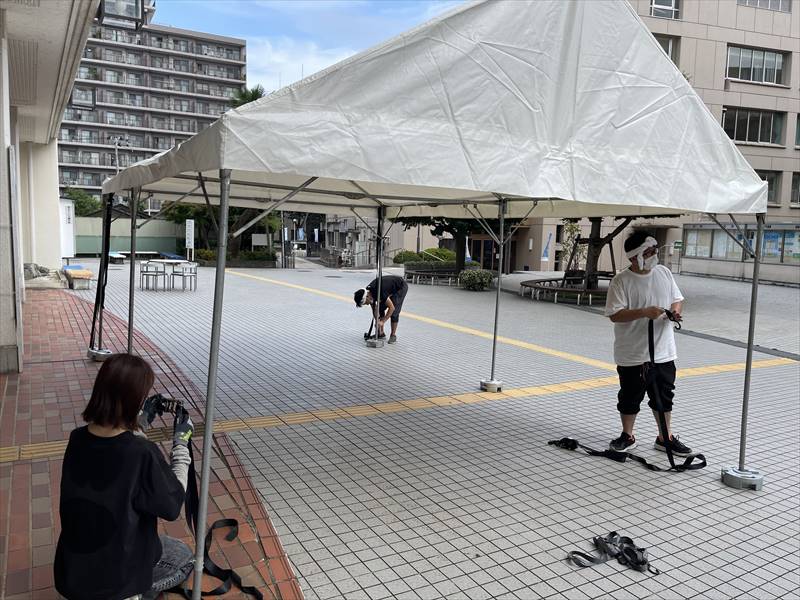仙台市内で夏のテント設営!雨・風対策もお任せください!