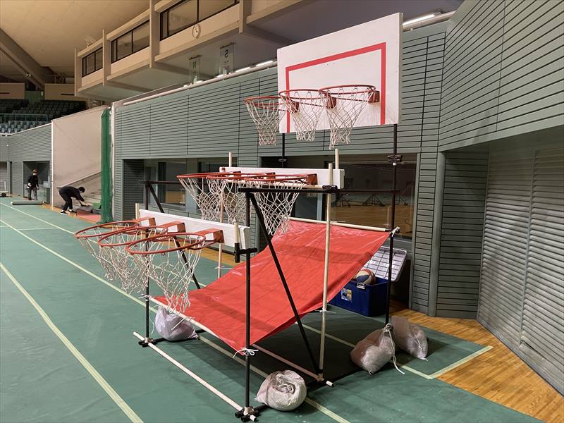 3~4人が設営撤去に必要ですが、現地でお客様にお手伝い頂き費用を抑えています。バスケットナインの設営には専門知識が必要ですが、このような形でご予算に合わせることもできますので、ぜひお問い合わせください!