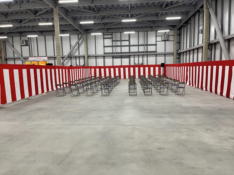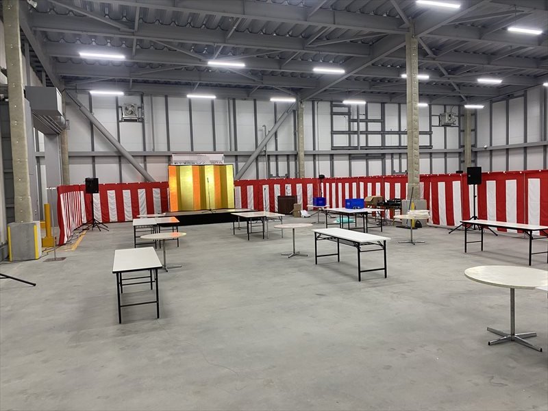 新しく建設された倉庫のオープニングセレモニーの会場を設営させていただきました!