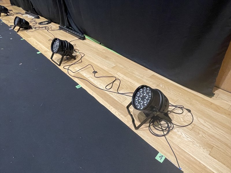 DMXコントローラーを使用することで、LEDパーライトやフットライトを遠隔で自在に操作することができます!色や明るさ、点灯のタイミングまで調整できるため、ステージ演出の幅がぐっと広がります。