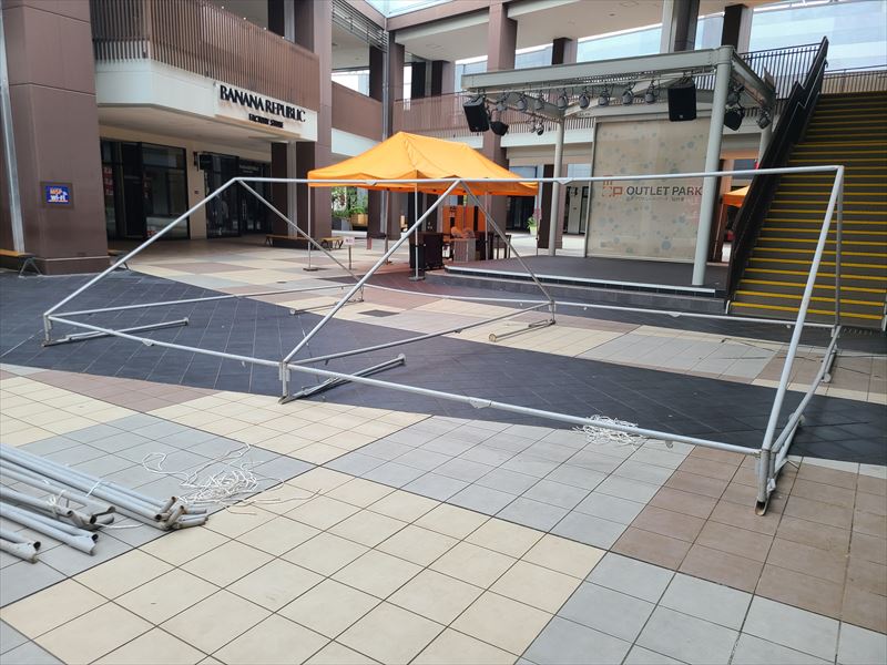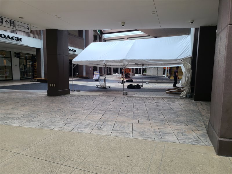 宮城県仙台市のアウトレットモールでの大きなテントの設営!