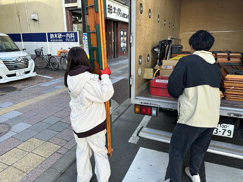 今回はトラックを路肩に停められる場所を複数ご用意いただいていたため、トラックで移動しながら各所へ納品を行う形となりました!状況に応じて柔軟に対応できたことで、全体の作業もスムーズに進みました!