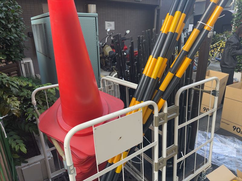 今回は、東京都の新宿区で歩行者天国を開催するという方からご相談いただき、物品をまとめてお手配させていただきました!物品は、出店の方が雨や風、日よけに使用するテント、作業スペースや受付に使用したベニヤテーブル、来場された方の飲食スペースに丸椅子、テーブル、ステージ前に青色の軽量ベンチ、会場に出たゴミをさっと捨てられる段ボールゴミ箱、会場のいたるところで活躍するコードリール、その他、雨に降られても安心なようにテントの横幕などを納品させていただきました!一日限りのイベントで、時間もかなりタイトなスケジュールで、とにかくスピード、効率重視で運営の方々にお手伝いいただきながら、会場へばらまいて必要なところへ行き届くように意識いたしました!