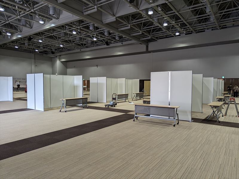 広い空間にパネルをレイアウトし、ブースを設営しました!