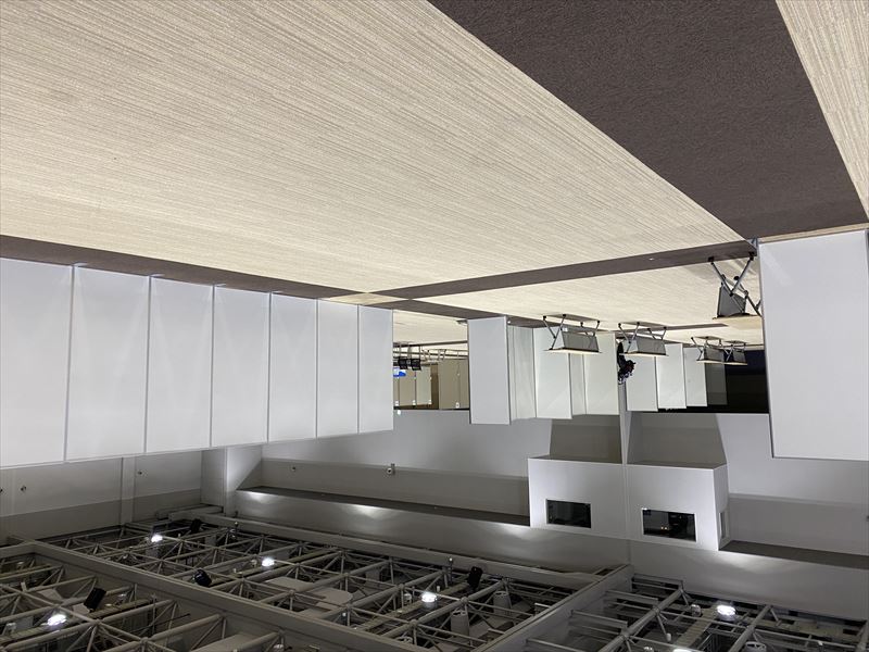 パネルの設置が終わると、広い空間が一気にイベント会場らしくなってきました!それぞれのブースがしっかり分かれ、どこで何が行われるのかがわかりやすくなります!そこに、ピクチャーハンガーやハンガーラックなどの道具を追加して、さらに使いやすい形にしていきます!