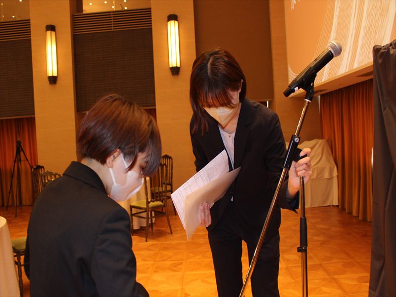 MCの方と打ち合わせをしています。MCの手配も弊社で行い、事前の打ち合わせや当日の説明、ディレクションも行っております。