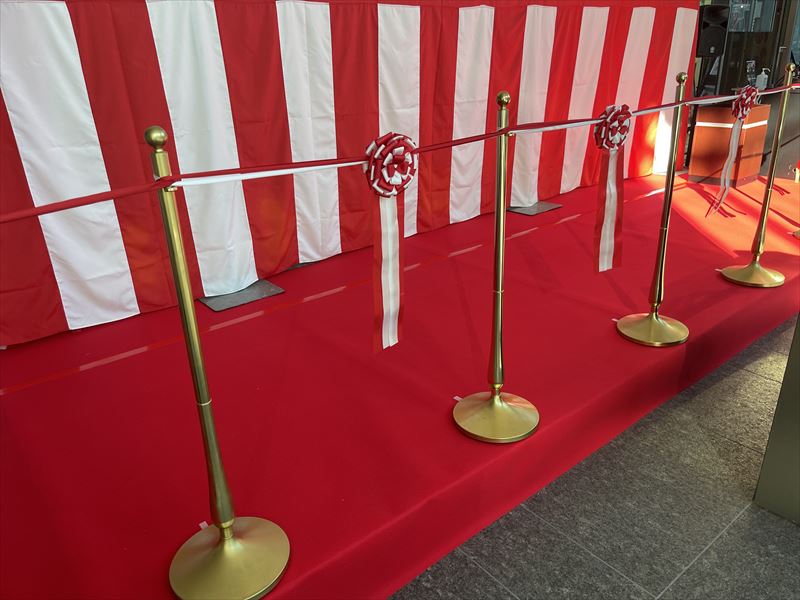 赤いカーペットが敷かれた瞬間、一気に会場が華やぎ、参加される方々をしっかり迎え入れられる雰囲気へと変わります。