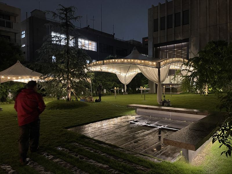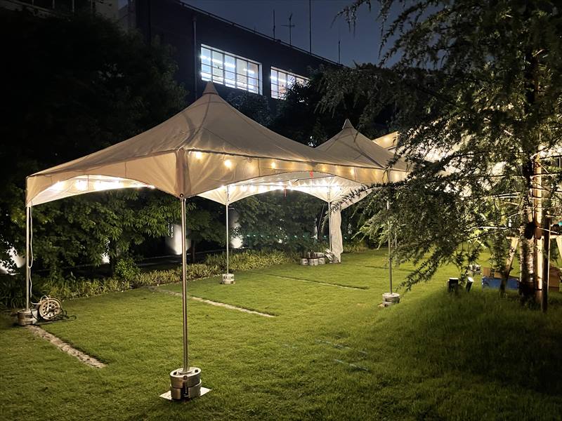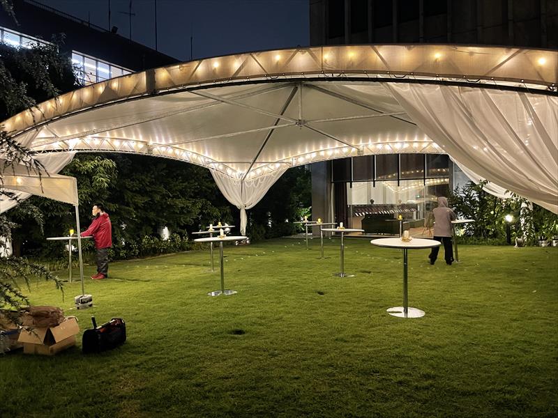 東京都文京区で10mテントを使用した夜間のパーティー会場を設営!