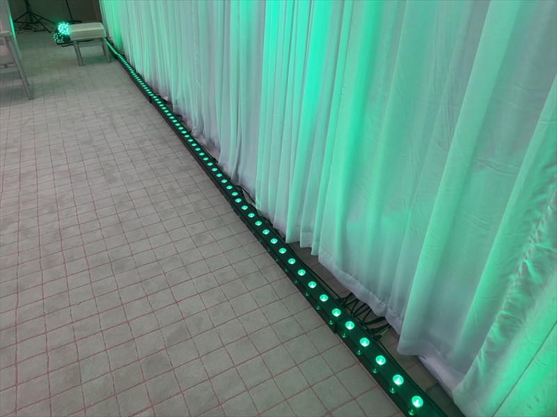 幕の後ろにLEDフットライトを設置し、幕や背景を美しく照らすことで、式典全体に華やかさと品のある雰囲気を演出しています!DMXコントローラーを使用した調光により、進行に合わせた明るさの調整を行い、表彰の瞬間がより印象に残る空間づくりを実現しました!