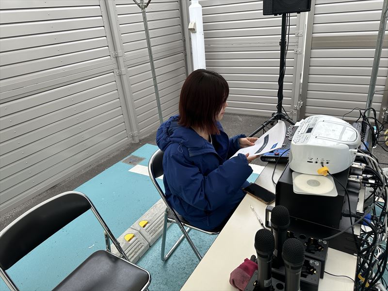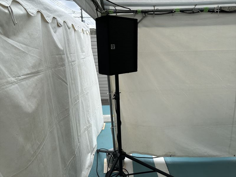 また、式典の進行に合わせた音響機材の設営から当日の音響オペレーションまでを一貫して担当。来賓のご挨拶や司会進行が聞き取りやすく会場全体に届くよう、事前の音響チェックや本番中の細かな調整を行い、格式ある竣工式をしっかりと支えました。