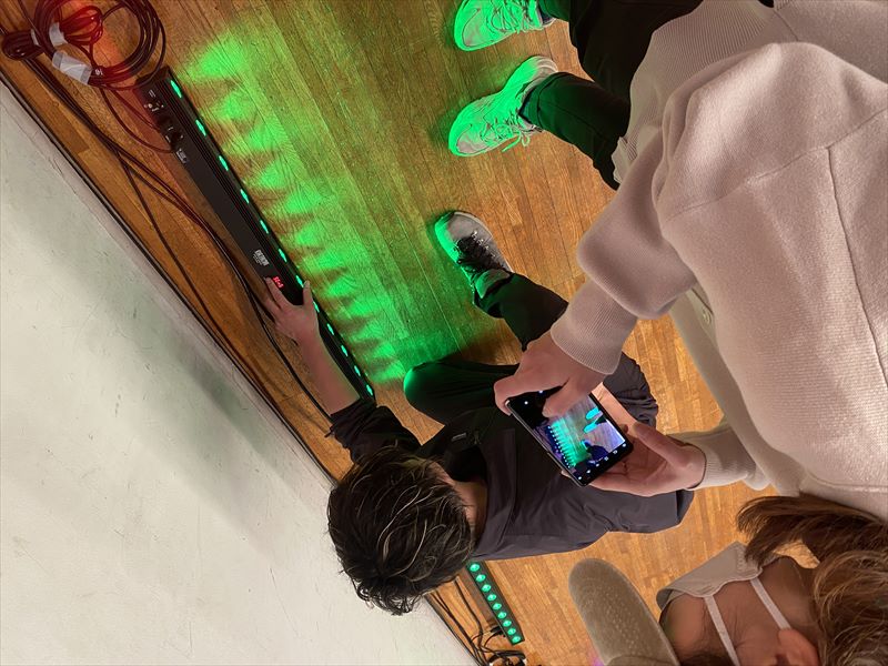 DMXコントローラーを使用し、色味や明るさを細かく確認しながらセッティングを進めました!