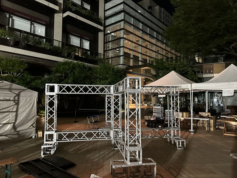 照明や演出機材の設置を想定し、強度やバランスを確認しながら慎重に設営を行います!