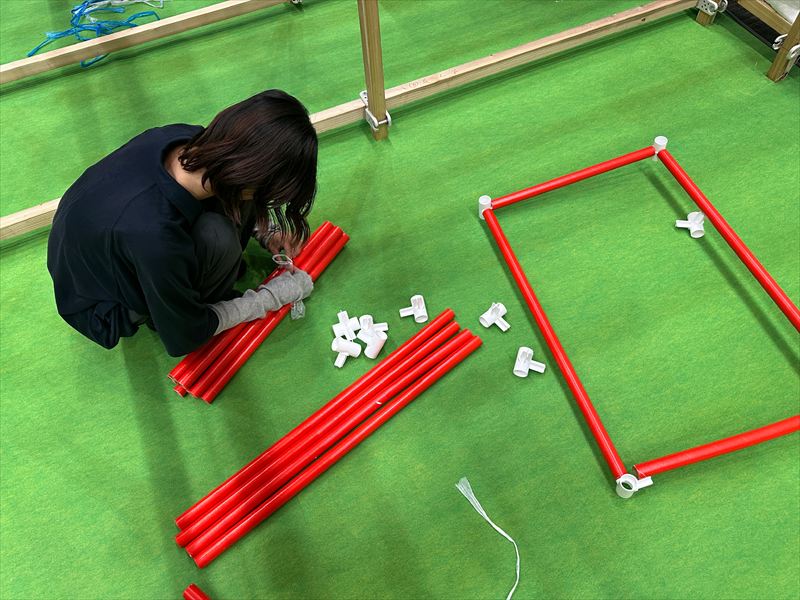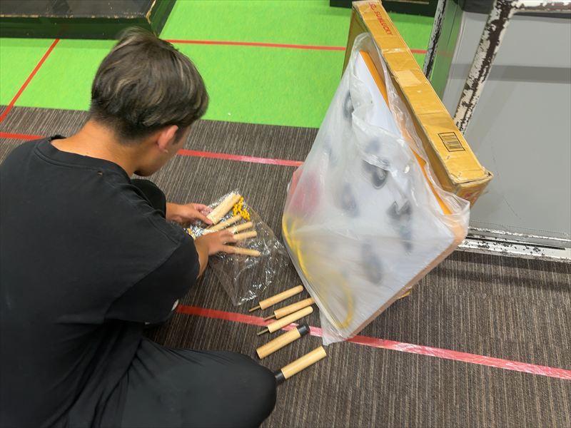 各ブースにはあらかじめ設営されたブースやスペースに合わせて遊具を設置し、射的や千本吊のブースでは、お客様がご準備された景品の配置もお手伝いさせていただきました。