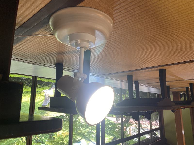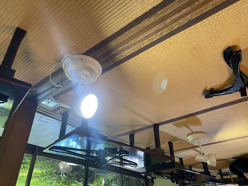 畳や障子など和室特有の雰囲気を損なわないよう、設置位置や光の向きを細かく調整し、やわらかく落ち着いた空間演出を心がけました! また、配線や機材配置にも配慮し、安全性と見た目の両立を意識して作業を進めました!