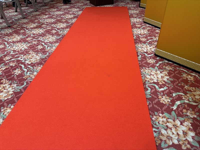 パンチカーペットや金屏風、花台などを設置する際は、会場の広さや来場者の動線を事前に確認することが大切です!