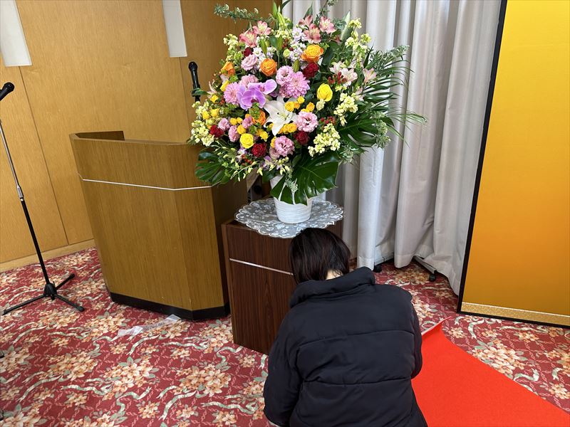 - 式典会場が想像以上に華やかで感動しました!パンチカーペットや金屏風の配置も丁寧に整えていただき、安心して式典を進めることができました!来場者の視線や動線まで考慮された設営で、式全体がとても落ち着いた雰囲気になりました!