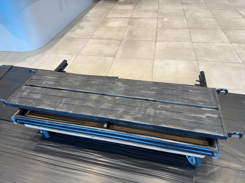 A2イントレのパーツや必要な資材を会場に搬入しました!重量のある部材もスタッフ同士で声を掛け合いながら、安全を最優先に運び込みました!搬入時に床の状態や通路の幅も確認し、設営がスムーズに進むよう準備しました!