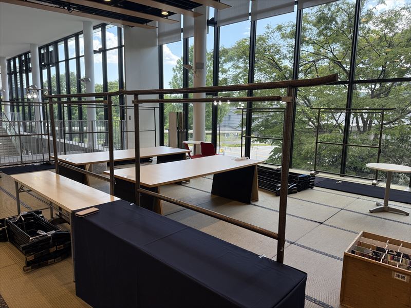 また、照明計画にも力を入れ、生地の光沢や模様が際立つようスポットライトを角度調整しながら設置。結果として「布地の美しさが一段と引き立った」との声をいただくことができました。搬入・設営時には什器の重量やサイズに注意し、スタッフ間で動線を共有したことで作業もスムーズに進みました。今後も主催者様のご要望に沿いながら、来場者に和装の魅力を存分に体感いただける会場づくりを心がけてまいります。