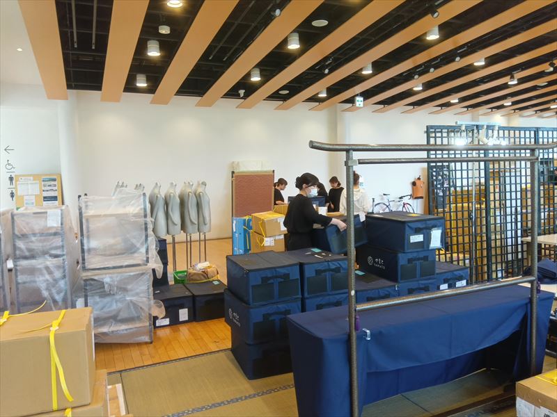 特に和装什器は重量があるため、搬入経路の確保や作業スタッフの人数調整をおすすめいたします。