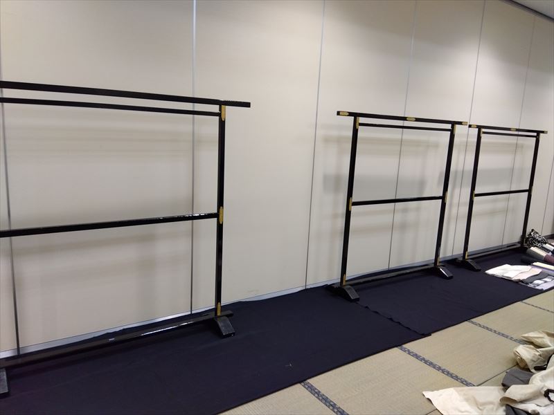 福島県福島市での呉服展示会で使用しましたが、「スタイロ畳」「衣桁」「姿見」「毛氈」「撞木」を黒で統一したことで、会場全体にぐっと高級感が生まれました! お客様も自然と足を止めてくださり、和の雰囲気がしっかり伝わる空間になりました! 特に姿見や衣桁は黒で引き締まった印象になり、展示している呉服の美しさがより際立ちました!