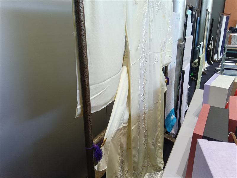 私たち設営スタッフは、安全に歩ける空間づくり、そして呉服がより一層映える展示空間づくりにこだわり、最後まで心を込めて準備を進めています!
