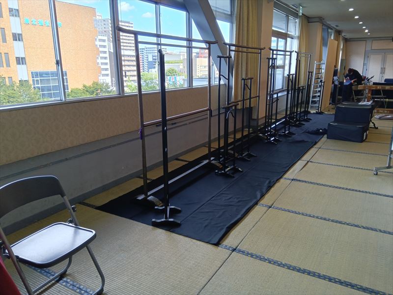 今回は、仙台駅のすぐ近くにあるイベントホールで行われる呉服展示会の会場設営を担当しました!