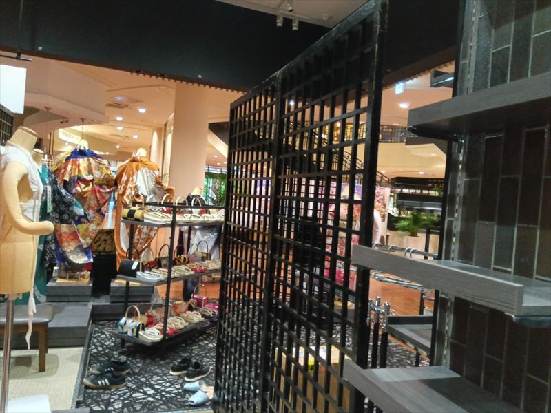 黒格子パネルの持つ洗練された雰囲気が、着物の華やかさと見事に調和し、まるで一枚の絵のような展示空間に仕上がりました!