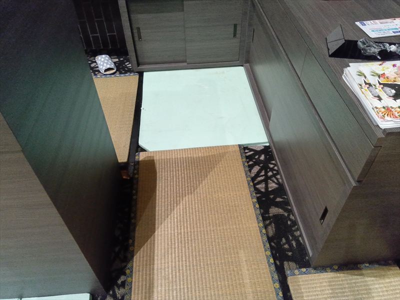また、足元にはスタイロ畳を並べ、畳と畳の隙間をスチロール材で丁寧に調整することで、段差のない美しい床面を演出!