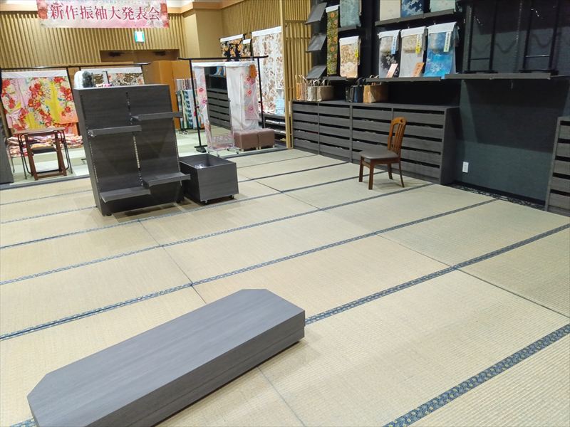 また、このひと手間によって、畳の並びもより整い、全体がきれいに見える仕上がりになりました!細かな部分まで丁寧に施工することで、展示会全体の完成度がぐっと高まりました!