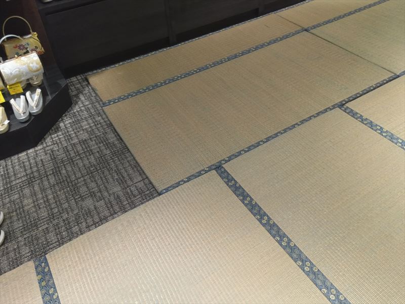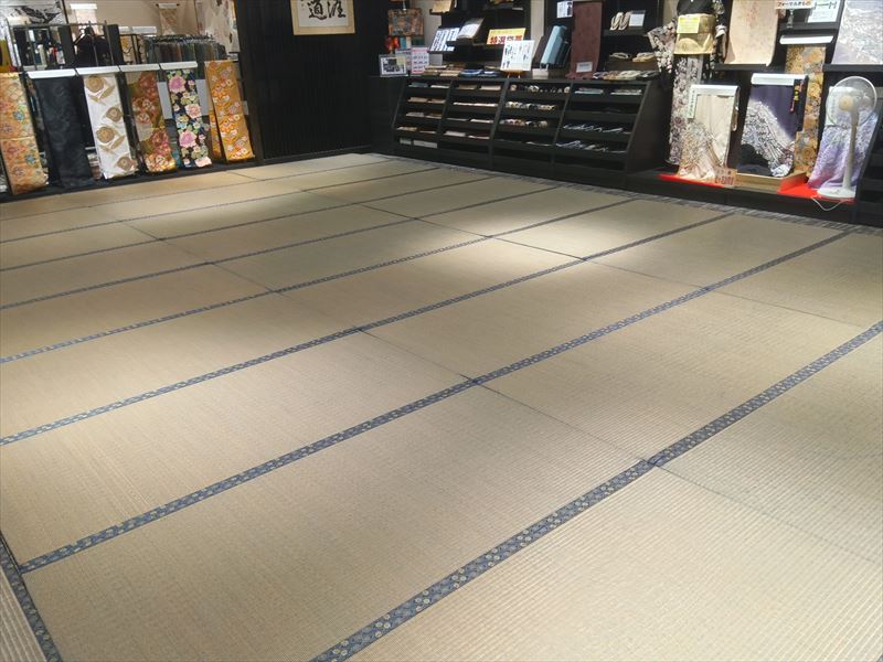 山形天童市にあるショッピングモール内の呉服店舗で、店内催事に向けて畳を敷いた設営を行いました!