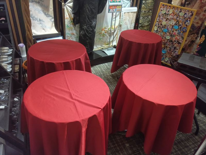 また、設置会場の床も合わせて事前のご確認をお願いしております!呉服会場では、畳や絨毯を床に敷きつめることで和の空間を作り出すことが多いです!その為、事前に会場の床材や広さを確認をお願いしております!!