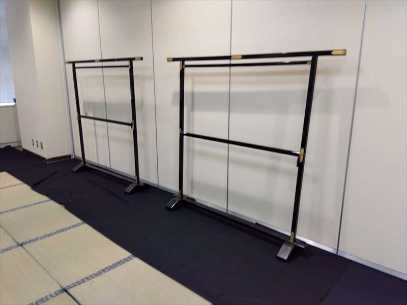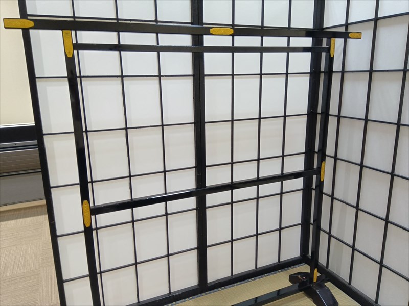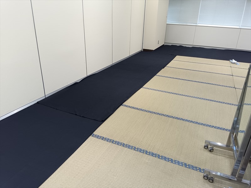 今回は会議室を使用した展示会だったため、無機質になりがちな空間を一気に和の雰囲気へと変える大切な工程となりました!