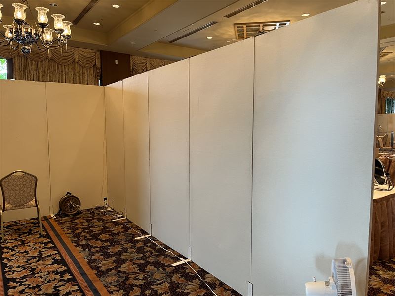 今回の設営において、ホテルのスタッフ様や主催者様に多くのご協力をいただき、心より感謝申し上げます!搬入経路の確認や会場の利用方法についてご案内いただいたことで、細い廊下を通る作業も安全に行うことができました!