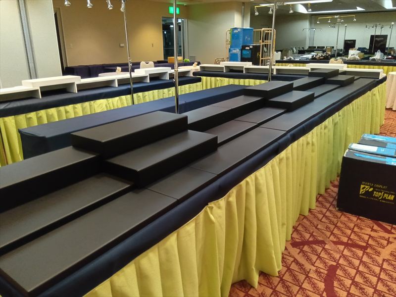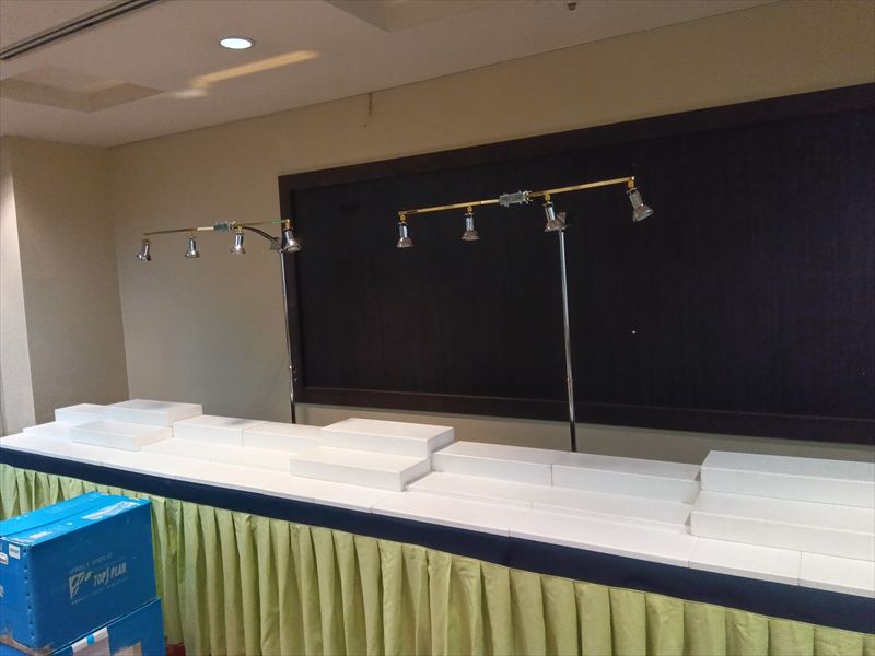 今回はステージのみの設営ということで、ディスプレイを並べる作業はなく、必要な資材や部材を効率よく運び込み、設置作業に専念することができました!