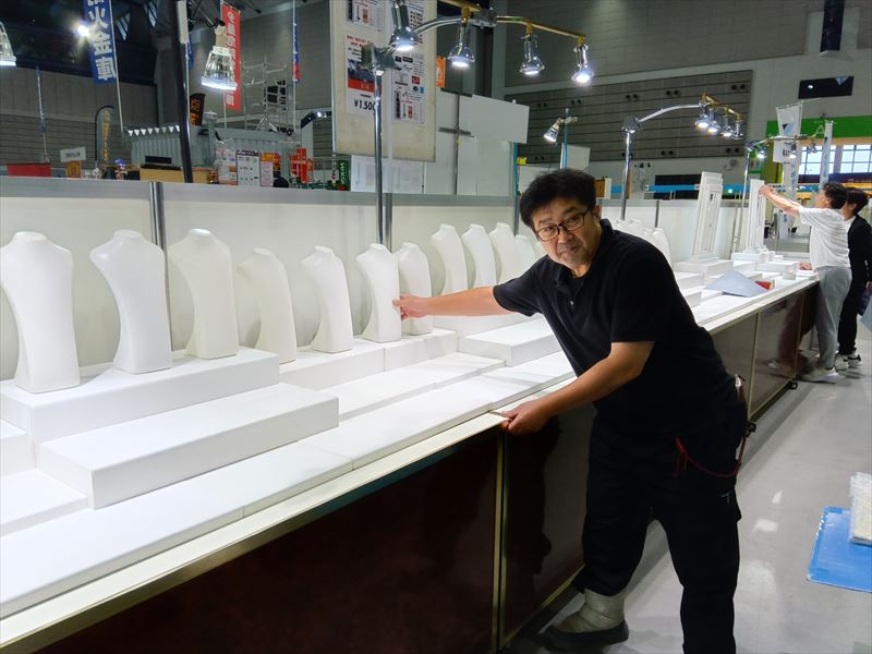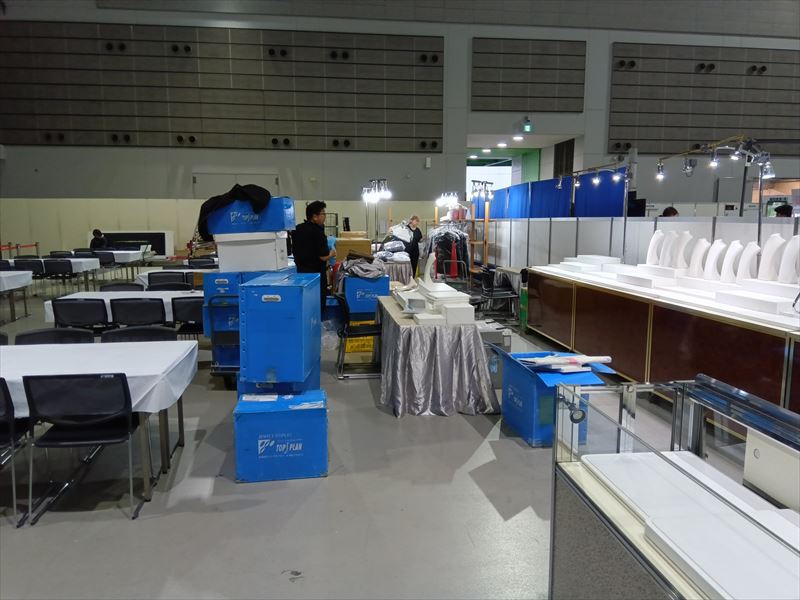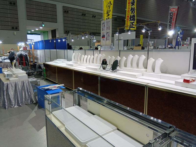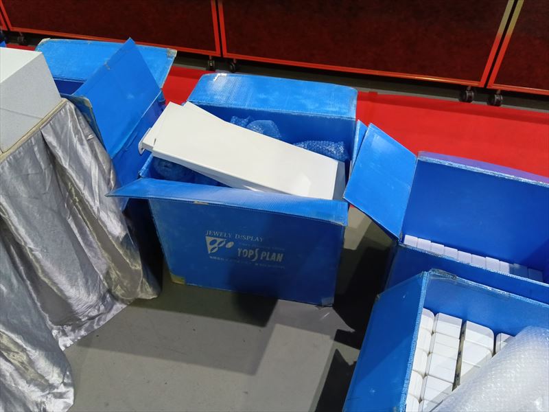 搬入・設置中は、スタッフと宝石の両方の安全を最優先にしてください!重い什器や照明を運ぶ際は段差や足元を確認し、作業手順を共有しておくとトラブルを防げます!さらに、什器の運搬順序や設置順序を計画しておくことで、短時間で効率的に準備が完了し、会場運営がスムーズになります!