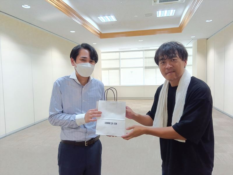いつもなら作業終了の挨拶と撤去の時間などを確認して現場を出るところですが、ここでプレゼントのサプライズです!