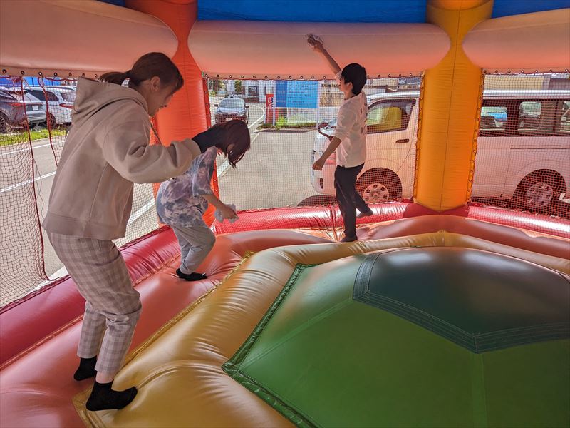 現場担当 古田よりお祭りイベントにて、ふわふわカッパドームを来場者の方に楽しんで頂きました!こちらの商品は外から中の様子がよく見えるので、お子さんに遊んで頂くときも安心ですね!お子様が楽しく遊んでいる写真をぜひ撮影してあげてくださいね!