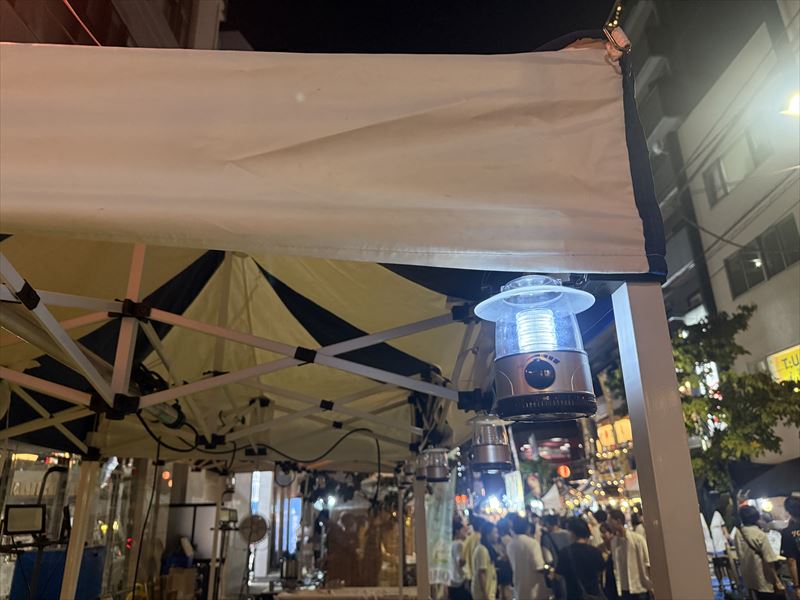 先日の屋外イベント出店では、夜でもパッと明るい雰囲気をつくるために、ランタンをたくさん吊り下げてブースを彩りました!