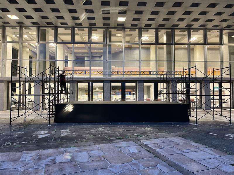宮城県仙台市内の大学構内で、なにもないまっさらなスペースに大きなステージ会場が出来上がりました! 弊社では、イントレの設置に入らせていただきました!イントレは二段のものを四基、ステージの四方へ配置しています。このイントレに照明などを吊り下げて、夜に暗くなった後でも雰囲気のあるステージになるんですね! アンチという足場の部材があるので、設置などもラクラク行うことができます。こういったステージ周りの備品はもちろん、大型のステージ設営もトップスプランにお任せいただけます!気になった方はぜひ、商品ページをご覧ください!