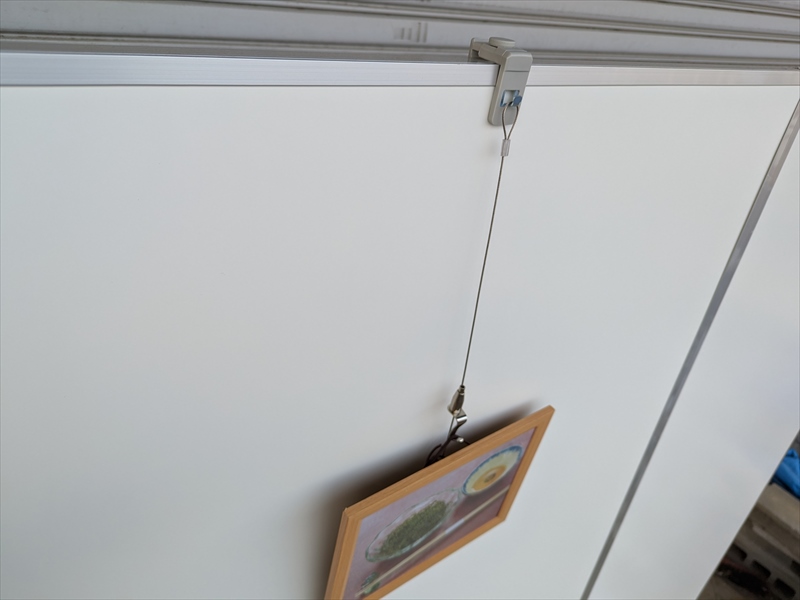 今回使用したのが両側にフックがついているタイプなので、パネルの両面で絵を吊るすことが出来できます!