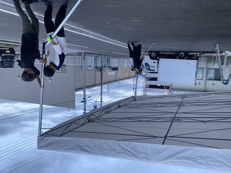 ステージテント(3×4間)を設営した現場では、広さと安定感に驚きました!