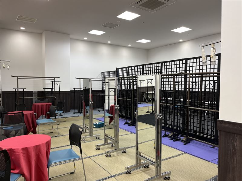 岩手県の商業施設内にある、着物を取り扱うお店にて、着付け体験などのイベント用に会場設営を行ってまいりました!