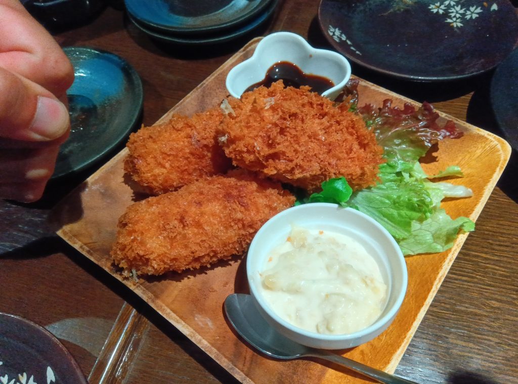 巨大カニグラタンコロッケを口いっぱいにほおばった瞬間の私の幸福度はMAXでした!付けわせのソースが二種類あり特に自家製のタルタルを付けて食べれば宙に浮きます!